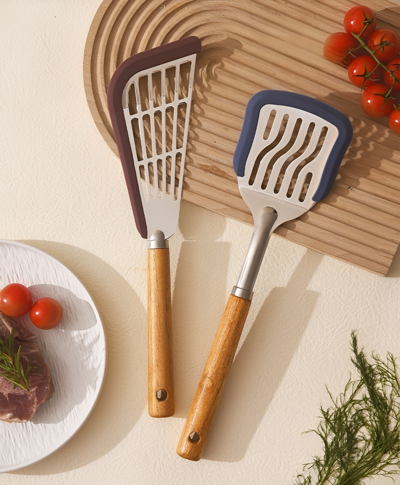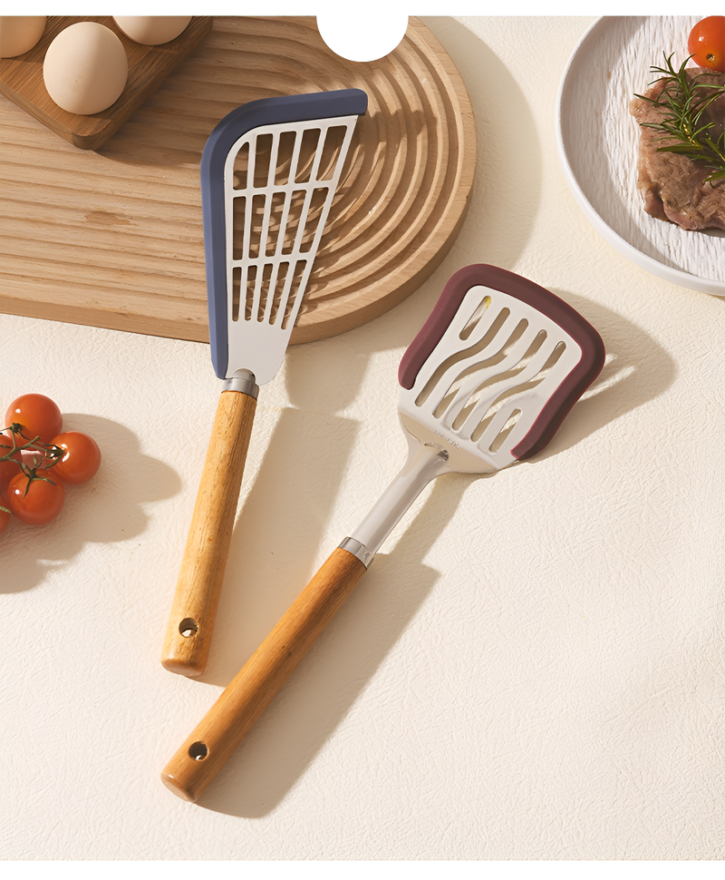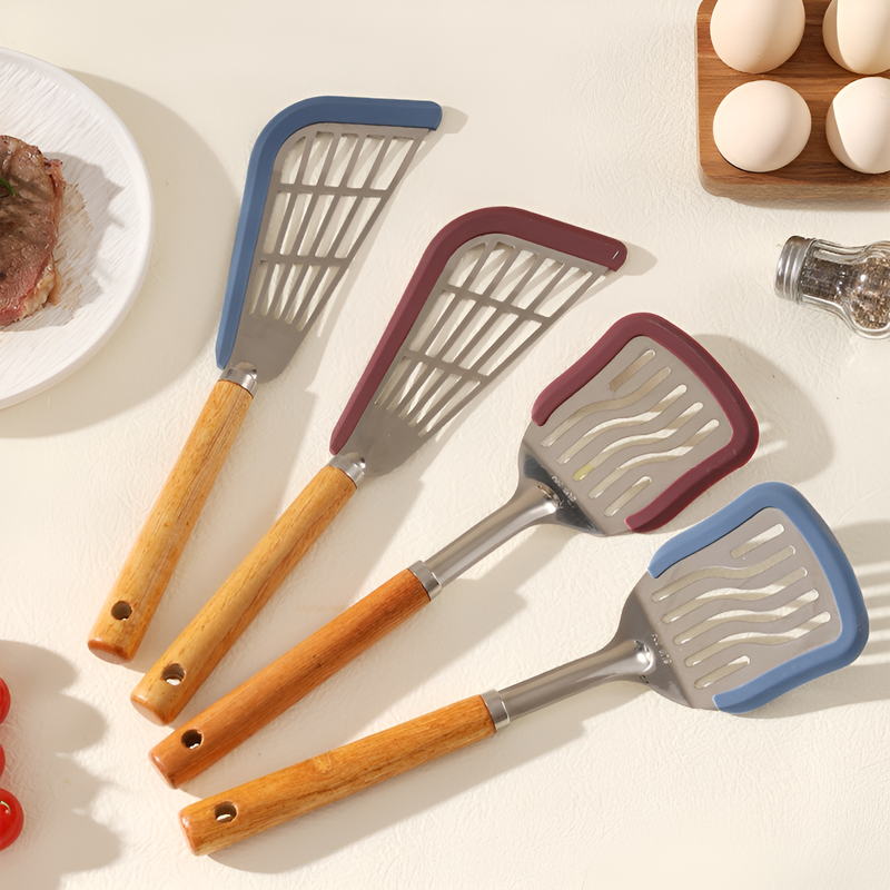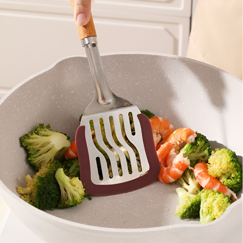 원목 코팅 프라이팬과 실리콘 주걱